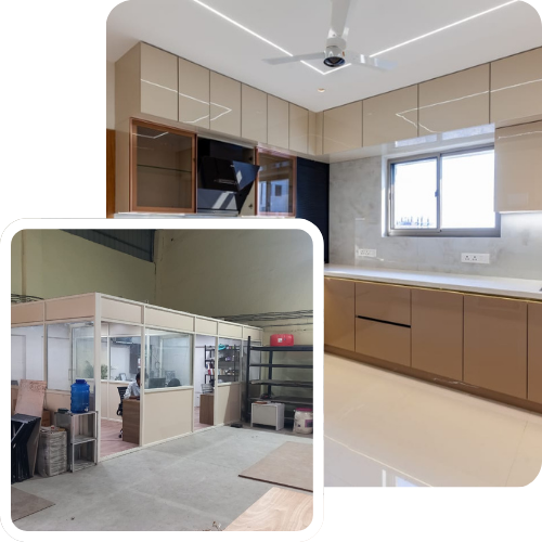 Our team of experienced interior designers and skilled craftsmen provides end-to-end services, including conceptualization, 3D visualization, material selection, and flawless execution. Whether it’s a luxury home, a corporate office, a co-working space, or a high-end spa, we craft interiors that reflect your brand, lifestyle, and personality while maximizing space utility and comfort.